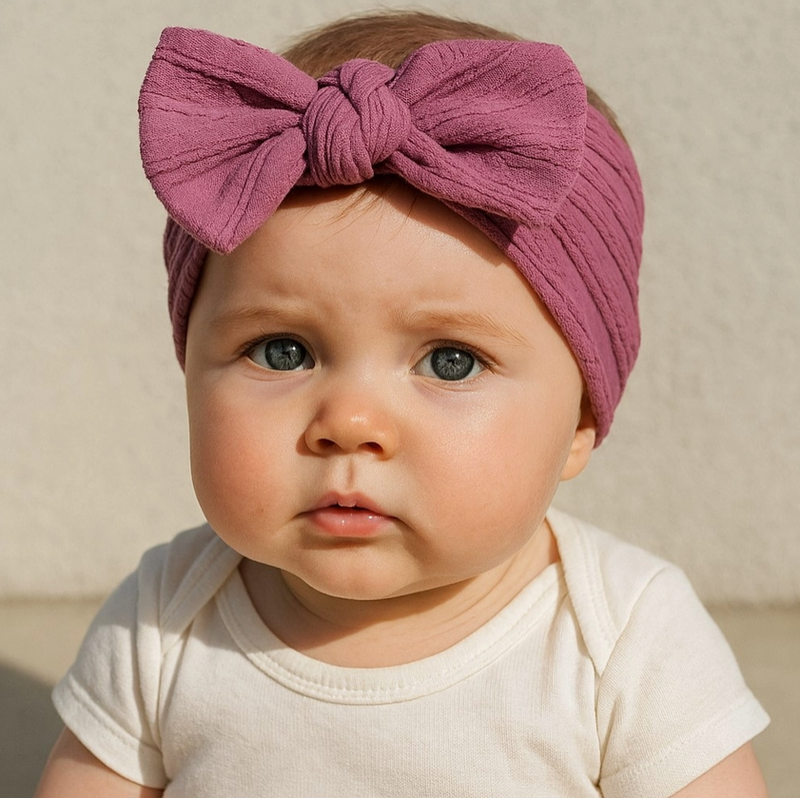 A nossa fita de cabelo para bebé em microfibra combina suavidade, leveza e elasticidade, garantindo conforto durante todo o dia sem marcar ou apertar a cabecinha do bebé.